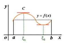 (2) 若 M>m,则 M 和 m 中至少有一个在 (a,b) 内取得,不妨设 ξ∈(a,b),使得 f(ξ)=M,则 ξ 为 f(x) 的极大值点,则 f′(ξ)=0。