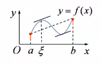 令F(x)=f(x)−b−af(b)−f(a)x ,则F(x)在[a,b]上连续,在(a,b)内可导,可证F(a)=F(b)=0,则由罗尔定理,存在ξ∈(a,b),使得F′(ξ)=0,即f′(ξ)=b−af(b)−f(a)